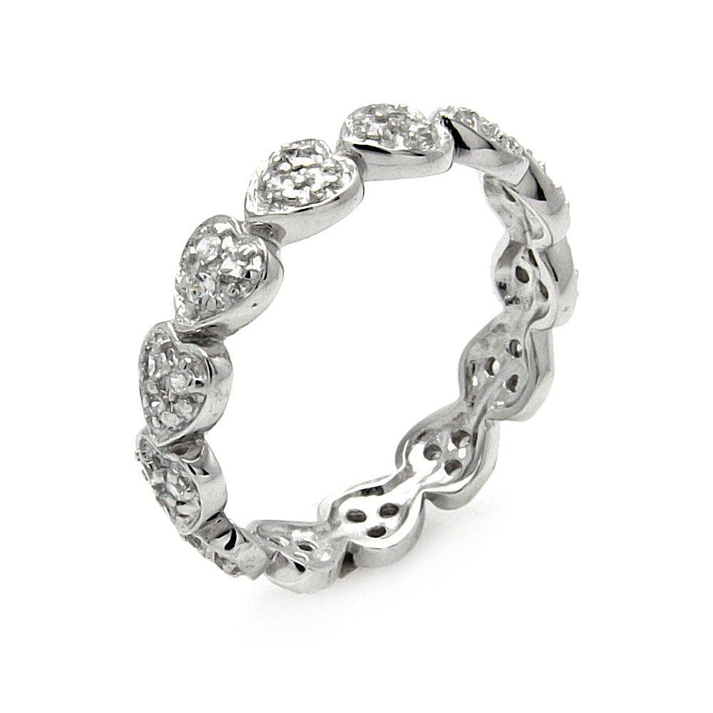 Silver 925 Rhodium Plated CZ Stackable Eternity Heart Ring - STR00254